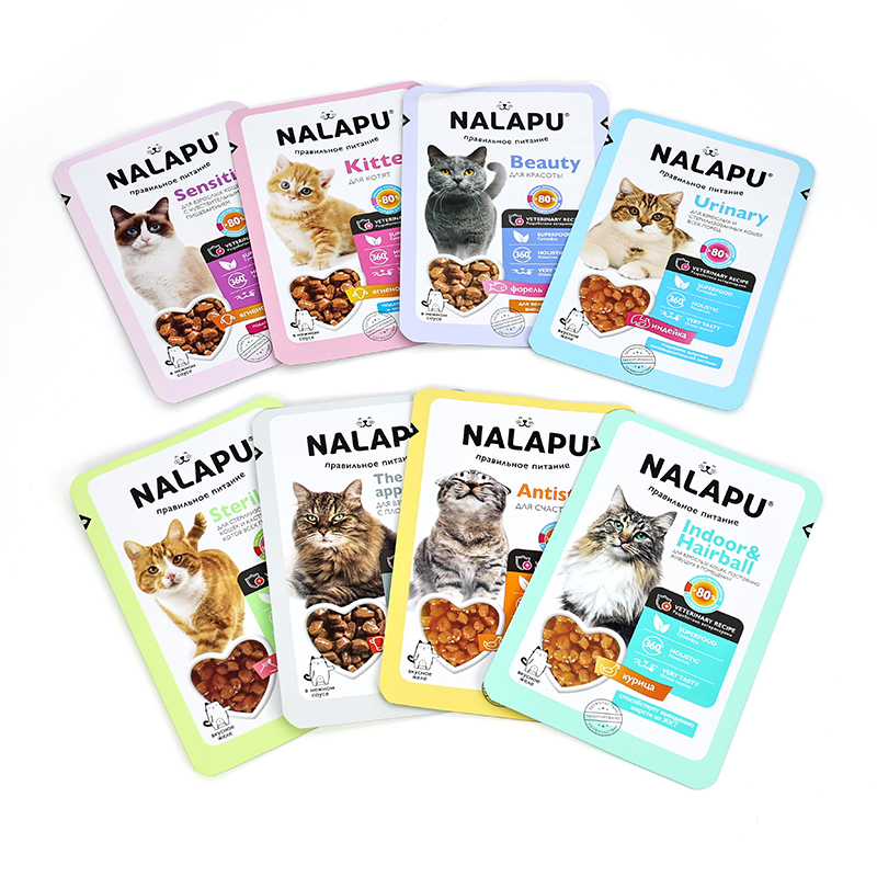 Pet wet food retort pouches are widely used across various pet food categories, including: